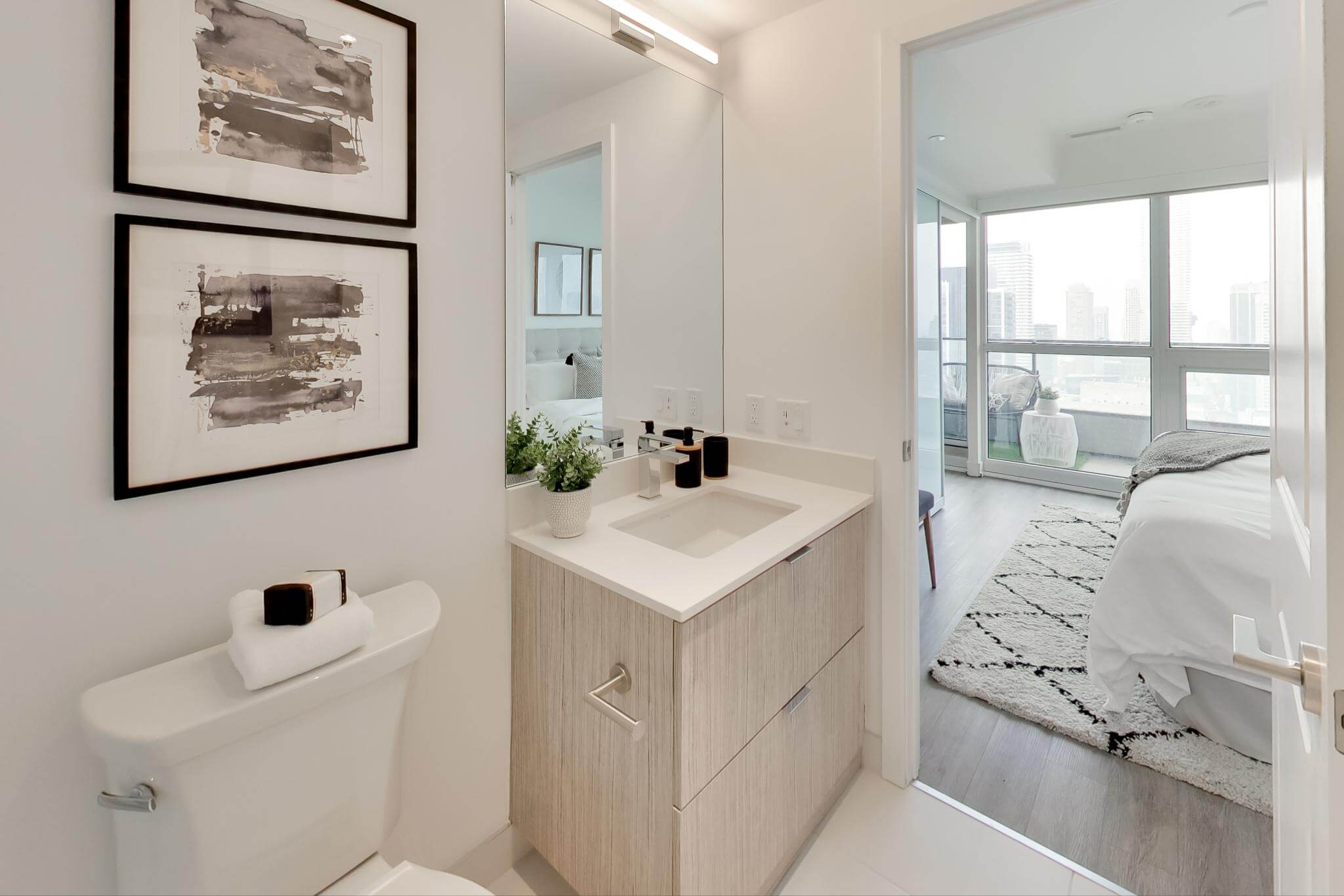 Step into your brand new, 2-bed, 2-bath luxury condo in the heart of Toronto. Form meets function in the largest and most desirable layout in the building. Highlighted by floor-to-ceiling windows spanning the entire length of the suite, the unit is flooded with natural light and boasts jaw-dropping panoramic views of Rosedale Ravine to the North, and the Toronto skyline to the South.